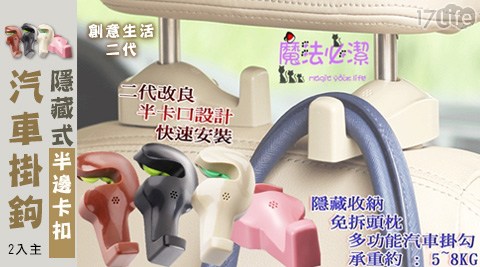 魔法必潔-創意生活二代隱藏式半邊卡扣汽車掛鉤(2入組) 相關的產品介紹在下面